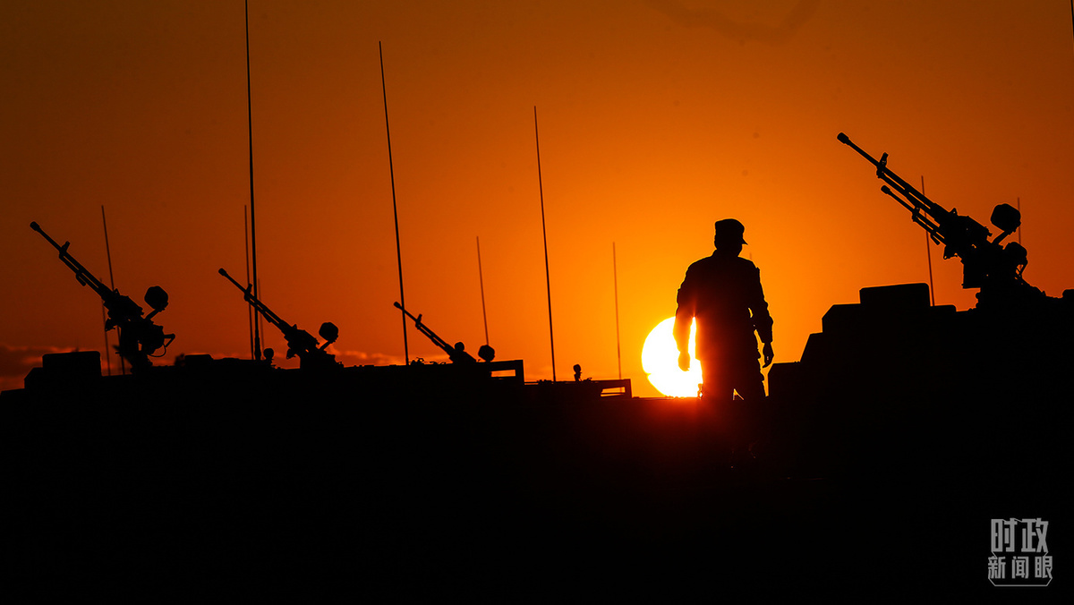△2017年7月,士兵在晨曦中登上装甲战车,为庆祝中国人民解放军建军90周年朱日和大阅兵做最后的准备。(总台国广记者李晋拍摄)