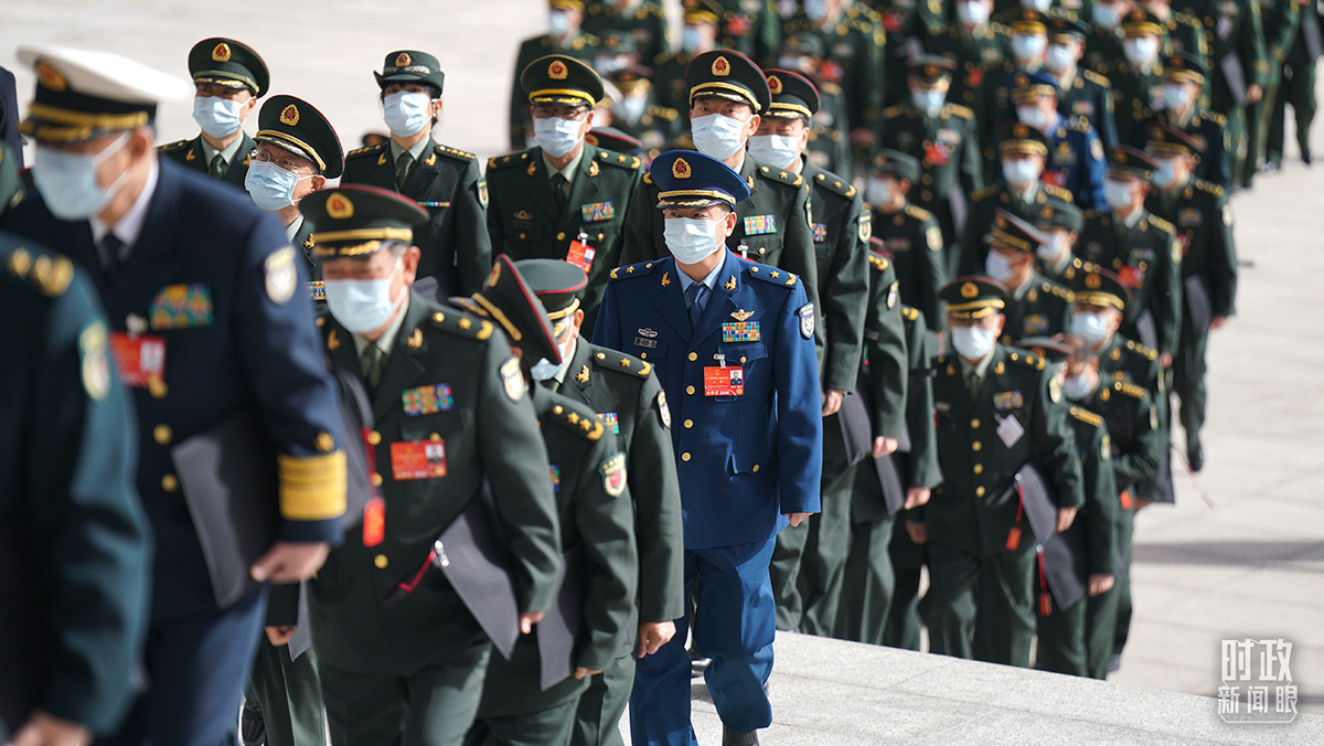△2022年3月4日,解放军代表步入人民大会堂。(总台国广记者 李晋拍摄)