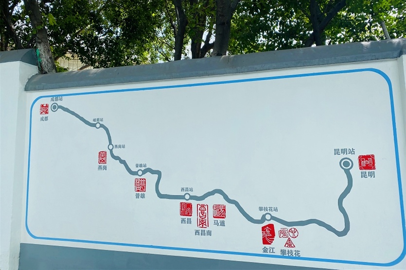 “既缅怀烈士、铭记过往,又美化了周围居民的居住环境。” 金江社区工作人员说,社区临近攀枝花火车站,许多老成昆线修建者、“铁二代”、“铁三代”居住在此,这面成昆铁路主题文化墙能够引发共鸣,传承弘扬三线精神。