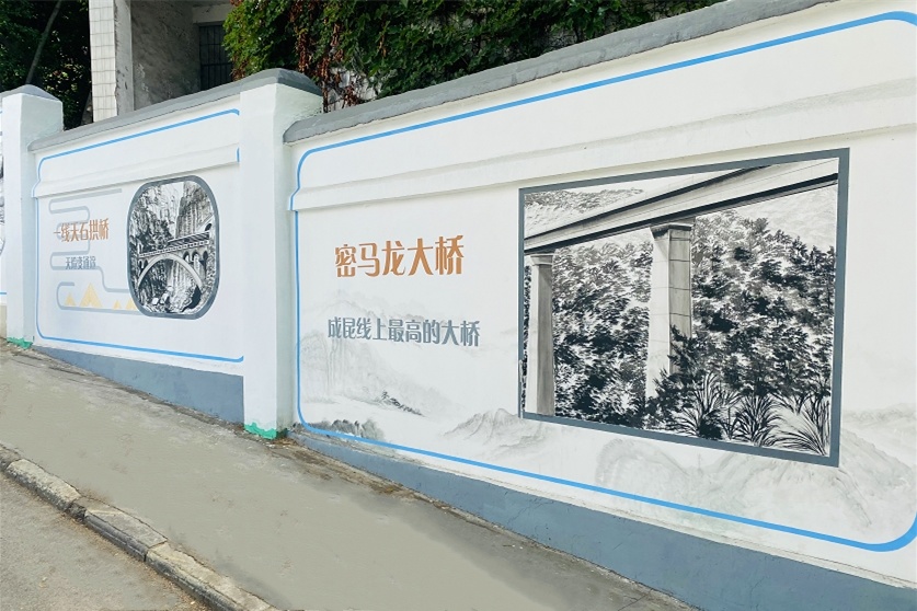 逢山开路、遇水架桥的英勇修路人,崇山峻岭中蜿蜒的“迷你版“铁路线、天堑变通途的标志性建筑……这些以黑白色为主的手绘,讲述成昆铁路建设故事,让旧巷子变成了一条文化墙新街。7月31日,攀枝花市仁和区金江镇金江社区,成昆铁路主题文化墙已基本完工,超高颜值吸引过往路人驻足观看。