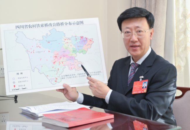 罗佳明:今年全国两会,我专门带了一张四川省农村铁索桥改公路桥的分布示意图。