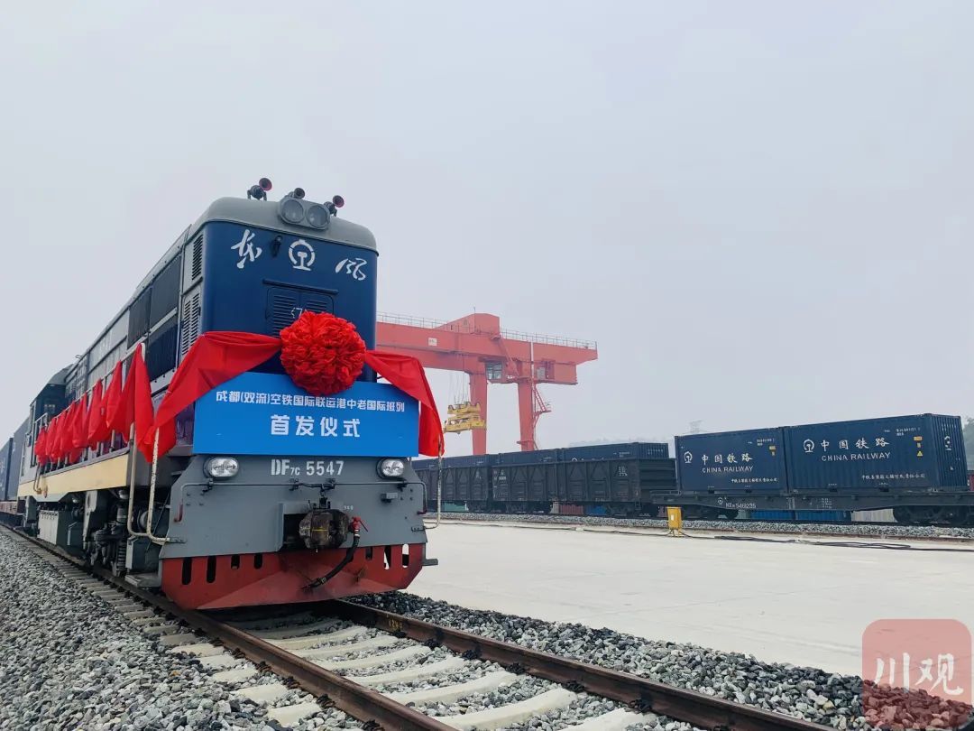成都(双流)空铁国际联运港开出的首趟中老国际班列(摄影 吴聃)