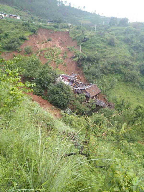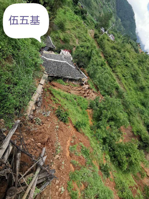 白碉苗族乡呷米坪村麦架坪组滑坡伍五基家受灾情况