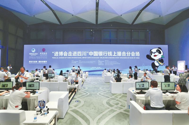在“进博会走进四川”投资推介对接会上,设置了中国银行线上撮合分会场,来自10余个国家的60余组中外企业进行了线上磋谈,涉及批发零售、设备制造、航空航天、汽车制造、建筑业、食品加工等行业,最终达成合作意向28项,意向金额逾百亿美元。