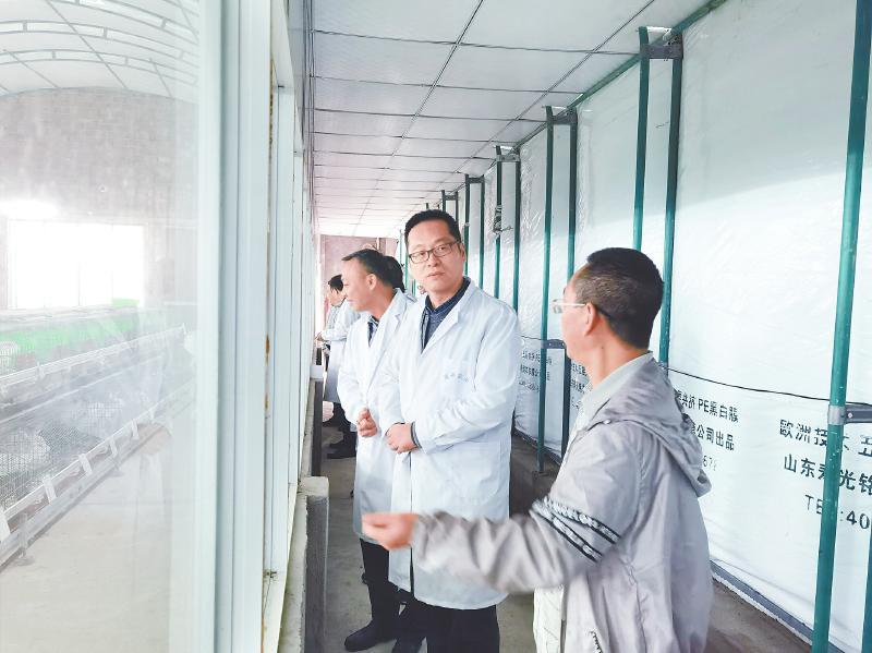 交行四川省分行行长王毅峰一行实地调研峨边晟峰农业开发有限公司羊子岩村养兔场。