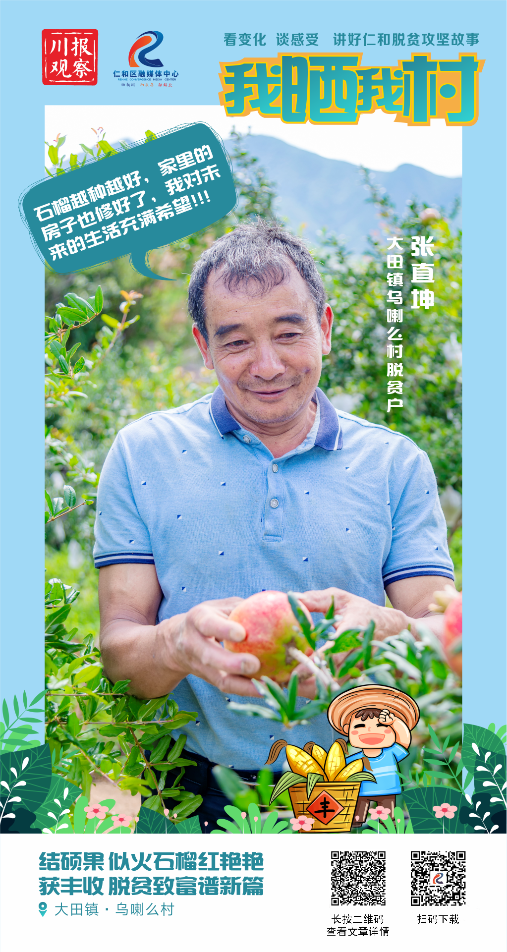 如今,张直坤的石榴地已经“扩张”到13亩,900多颗石榴树挂果,预计年收入能达到10万元。“家里修了敞亮的新房子,两个女儿也不用我发愁,往后的日子一定越来越好!”