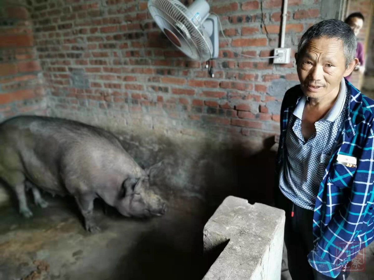 考察组到来时,罗旭正给猪搅拌饲料,他放下活计,带考察组转了一圈。他家共有3个猪圈,最大的母猪有五六百斤,还有10多头生猪、20多头仔猪。去年10月到今年5月,出栏生猪15头、仔猪20只,收益近10万元。“这片鱼塘也是我承包的。”他指着水面说,花了3万块钱,一次性付完。