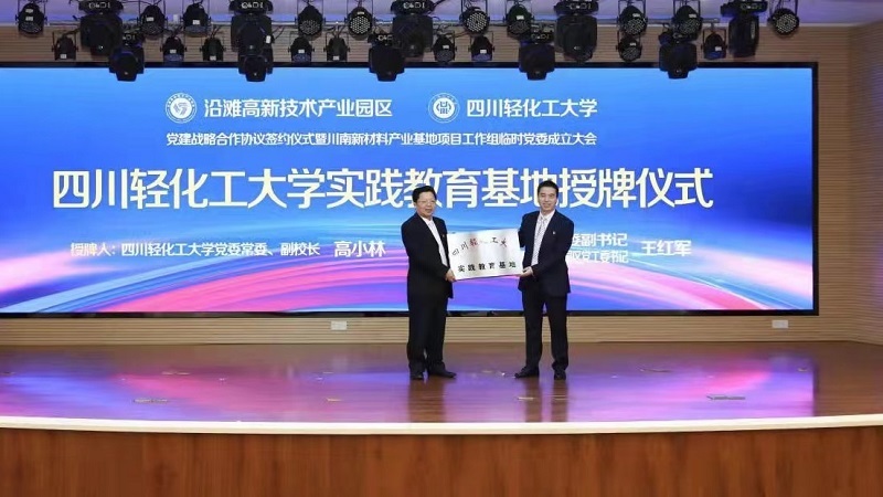 当日上午,四川轻化工大学、沿滩高新技术产业园区党建战略合作协议签约仪式暨川南新材料产业基地项目工作组临时党委成立大会在自贡市沿滩区科技孵化园举行。