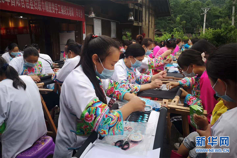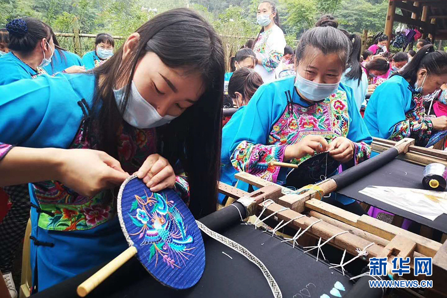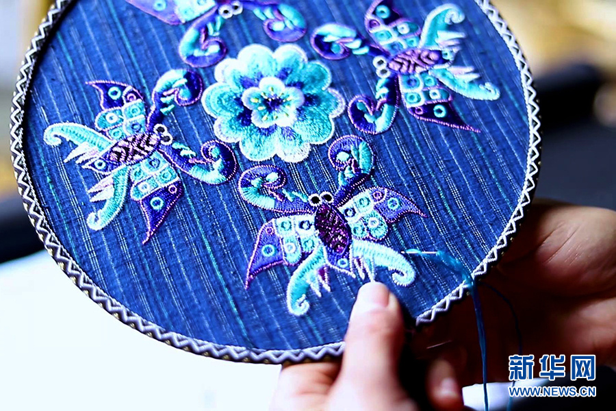非遗文化助力脱贫攻坚,这根绣针也绣出了贫困乡村脱贫致富的美丽画卷。新华网 黄俊辉 摄