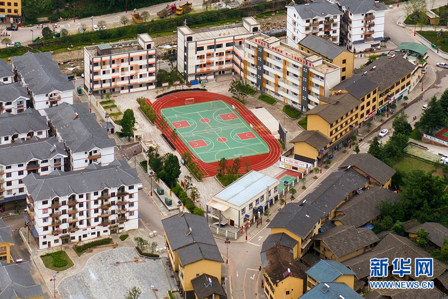 中益乡小学面貌一新,原来的水泥操场也变成了彩色塑胶跑道的标准操场。新华网 朱清 摄