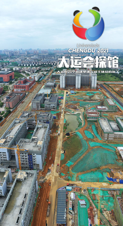 8月,位于成都龙泉驿区成都大学校内的大运村项目工地上工人们正加紧施工,目前,大运村A、B两区共22个新建单体中,运动员1、2号公寓已完工交付使用。其余21个新建单体中,除艺术中心外,其他20个单体主体结构施工已完成,进入装饰装修阶段。