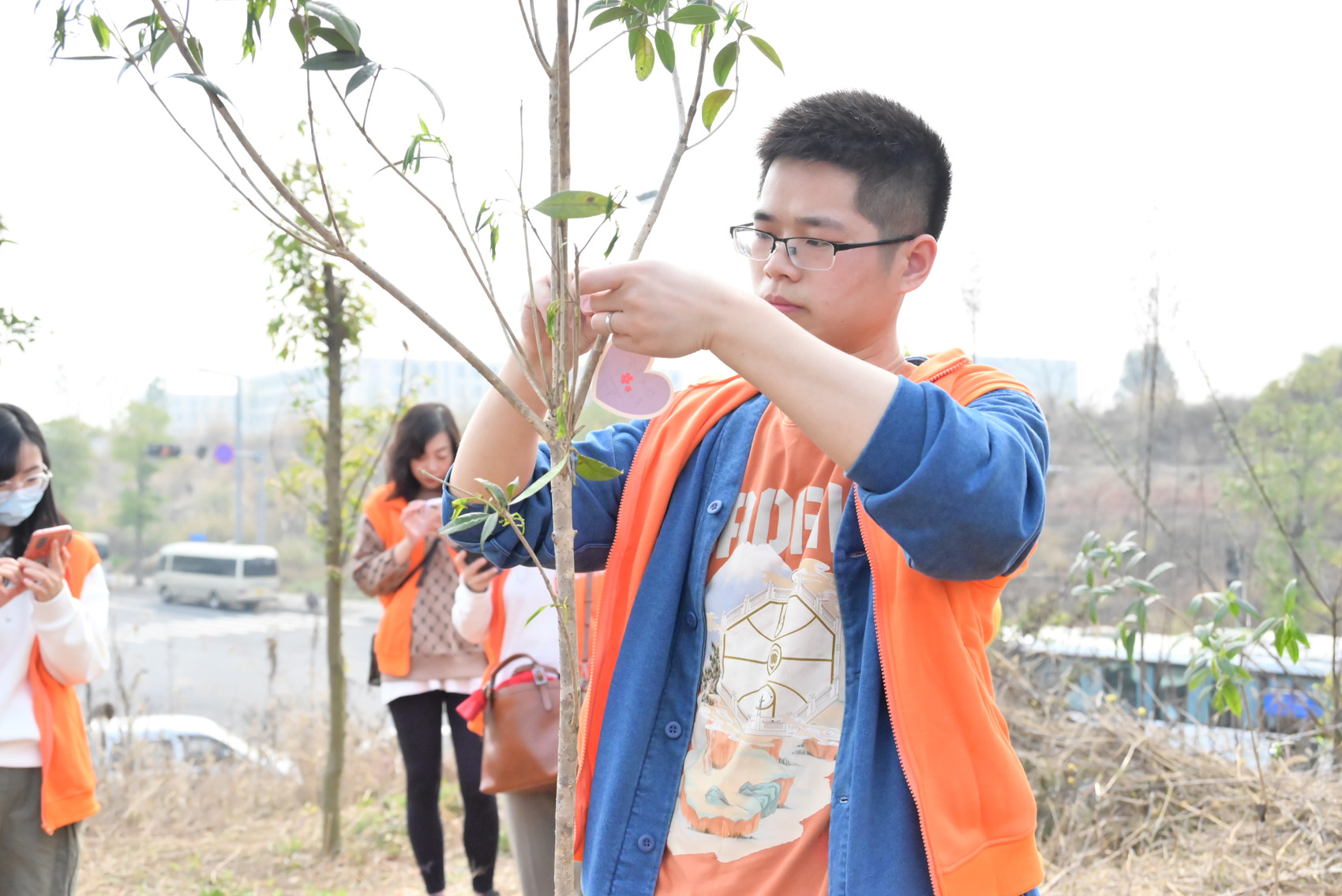 随后,举行了志愿者林揭牌仪式。在工作人员介绍植树注意事项后,各单位领队依次排队领取树苗并组织志愿者们拉开了植树的大幕。志愿者们“你挖坑、我扶苗”“你培土、我浇水”,大家分工合作,一个小时左右很快完成既定植树目标。最后,大家还将自己的写有祝福的“心愿卡”挂在所植的树苗上,祝福小树早日成为参天大树。