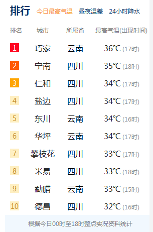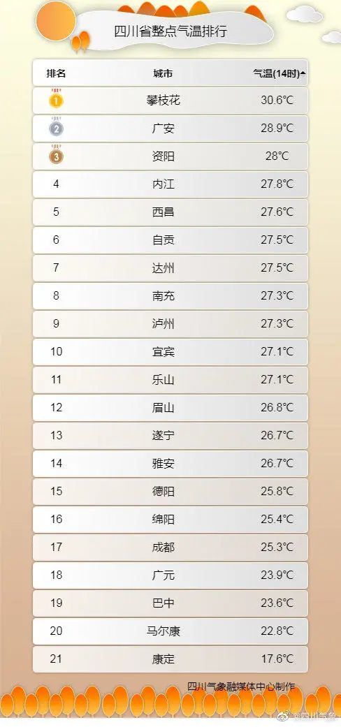 且不说攀西地区6个气象站凭借超30℃气温,冲上今天(3月11日)全国最高气温排行榜,即便是四川盆地,也有几个城市距离29℃仅差一(半)步之遥。
