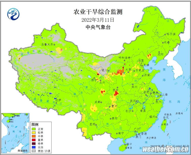 专家同时指出,由于3月上旬无明显降水,气温显著偏高加剧土壤蒸发,旱地土壤湿度有所下降,对无灌溉条件的坡台土作物生长有一定影响。