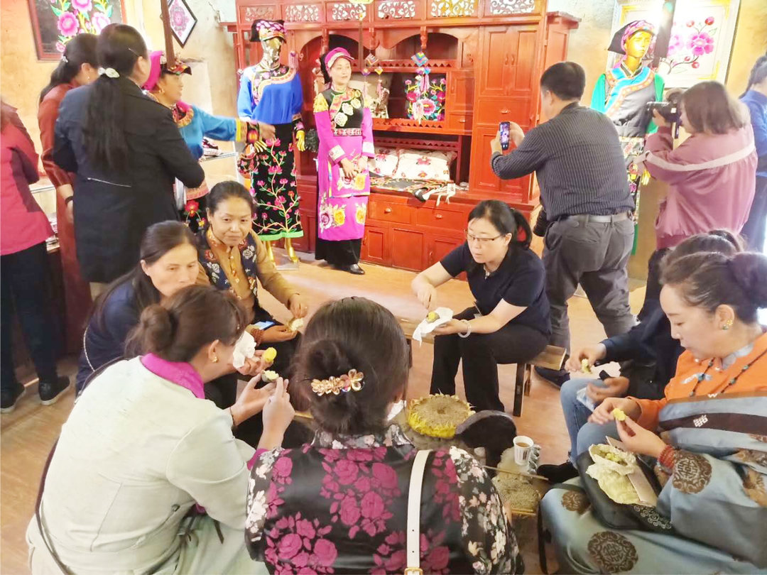 在金汤镇参加“指尖上的藏绣展”