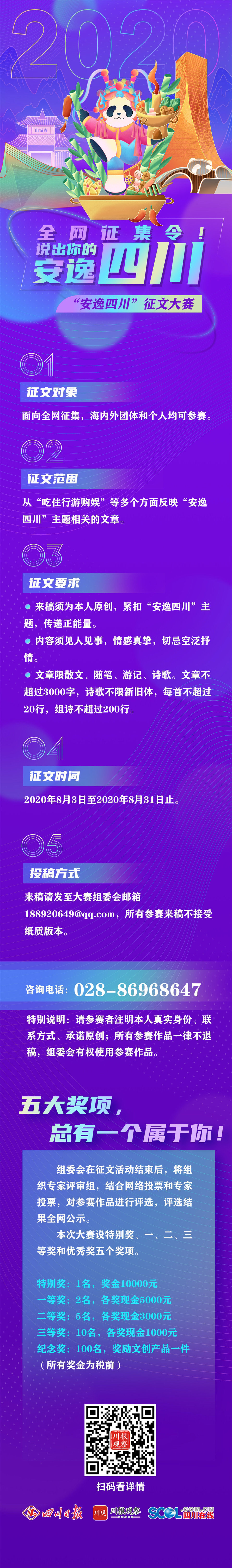 8月3日,四川省文化和旅游厅、四川日报社等单位联合发起的“安逸四川”征文大赛全面启动。从8月3日至8月31日,面向全网海内外团体和个人,征集从“吃住行游购娱”等多个方面反映“安逸四川”主题相关的文章,不论你写诗歌散文还是分享游记攻略,征文大赛让你一次说个够。