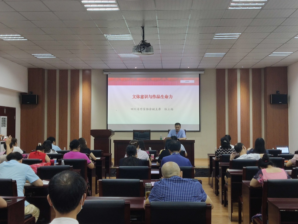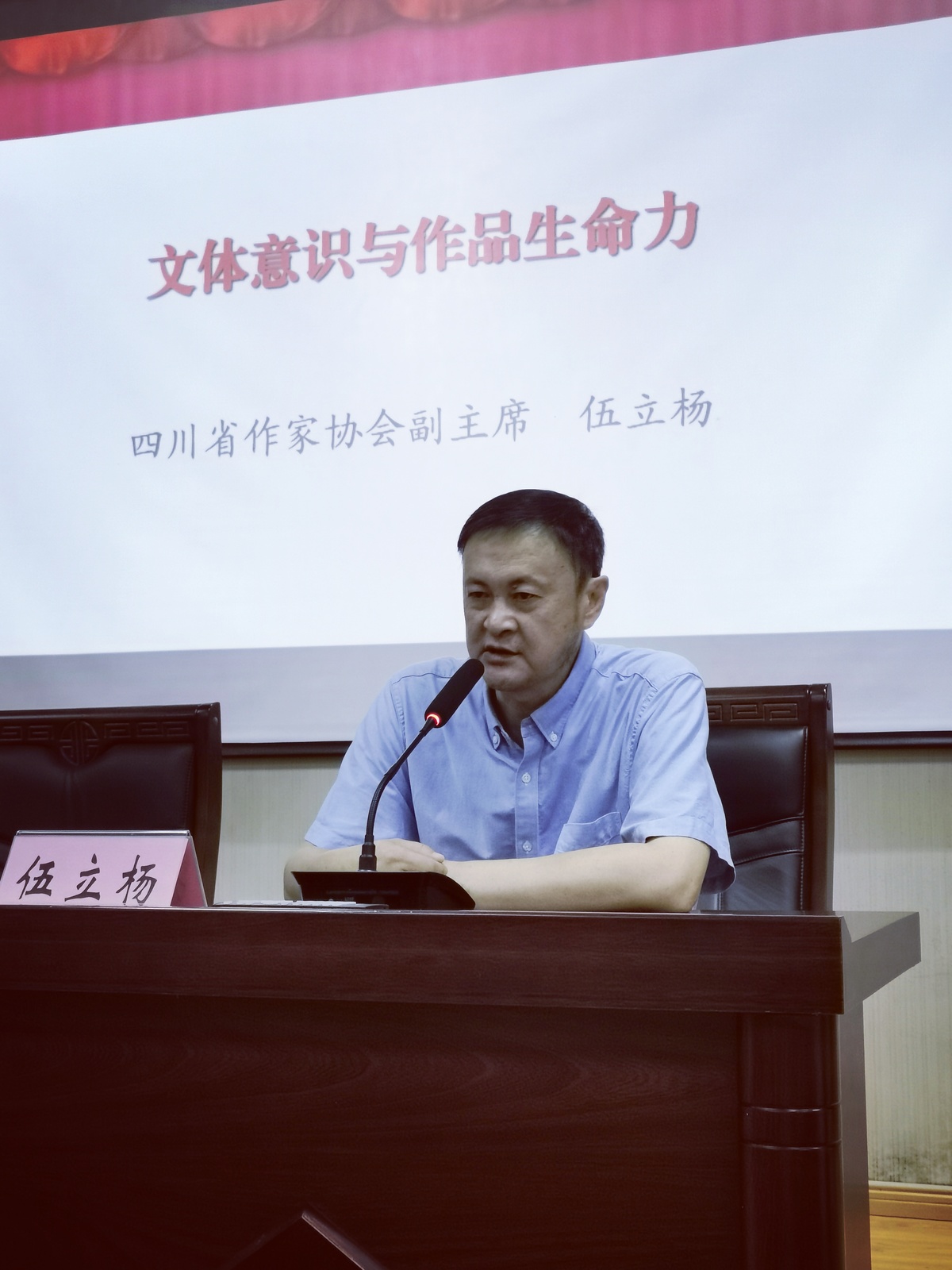 8月6日,四川省作协“红色文学轻骑兵·百场讲座进基层”暨四川省图书馆“21市州讲座联盟”走进眉山。伍立杨在眉山市委党校以《文体意识与作品生命力》为题,围绕文学作品的文体意识、文体意识得以形成的条件、文体意识要突破盆地意识等,进行深入浅出讲解。