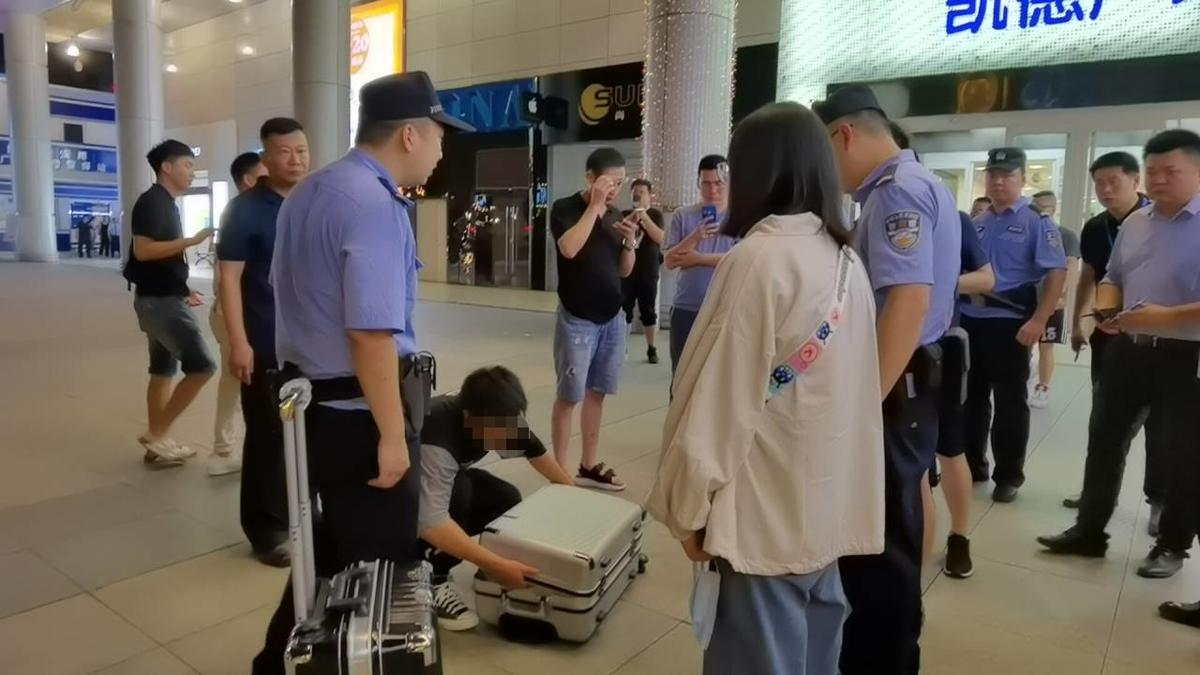 21时40分许,记者看到现场有两名青年男女在接受警方询问后,连同两个行李箱一起被警方带走。