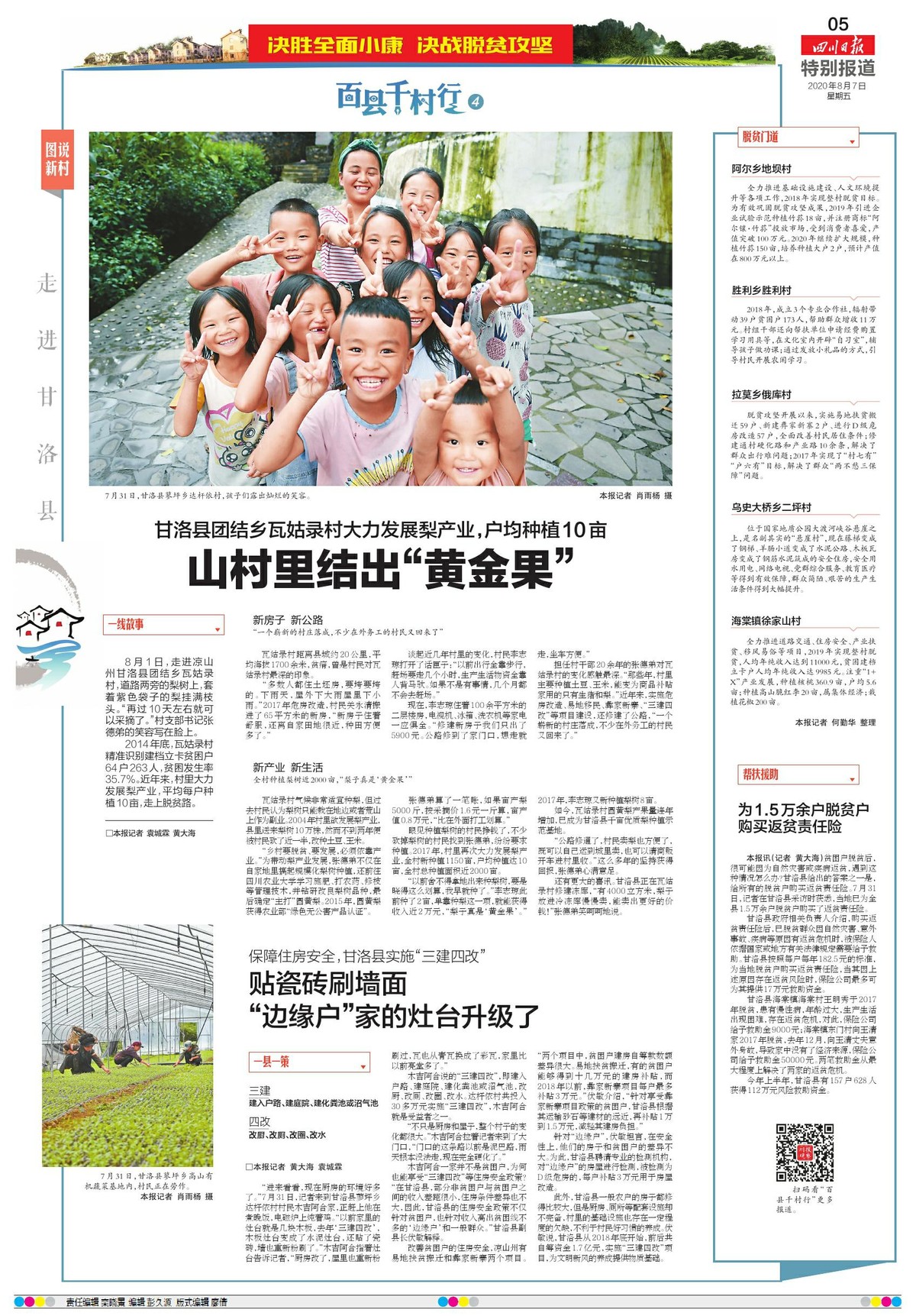 今天,8月7日,四川日报继续以“1+1”的方式(即头版一篇通讯+后面一个整版的文章),推出“百县千村行·走进甘洛县”特别报道,版面上大幅的照片——孩子们的灿烂笑容,令人眼前一亮。