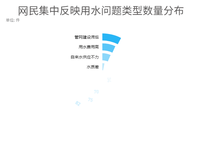 在261条留言中,涉及管网建设滞后的留言82条、用水费用高的75条,自来水供应不力的70条,水质差的34条。
