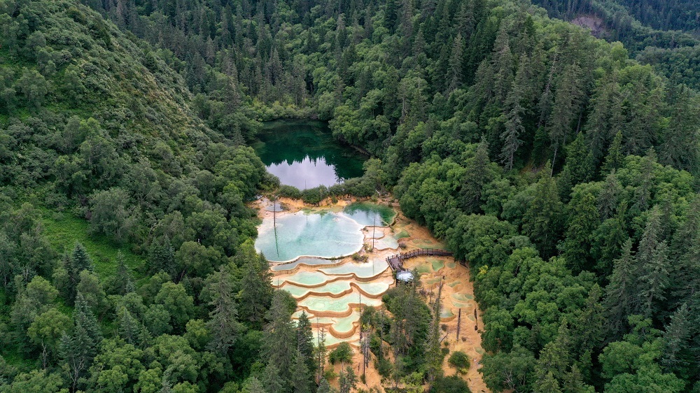 嫩恩桑措(神仙池)景区,位于九寨沟县大录乡,距九寨沟风景名胜区40公里,距九寨沟县城80公里,藏语意为仙女沐浴的地方。主要景点分布在一条长达3000米、宽约300米的高山峡谷之中,以翠湖、彩池、钙华景观为主,其特色在于融汇了清澈的高山海子、发育完好的大面积钙化景观、苍茫无边的原始森林等各种景观。这里不仅有黄龙的奇,也有九寨沟的秀美,集黄龙及九寨沟之美于一身。门票价格为100元/人。