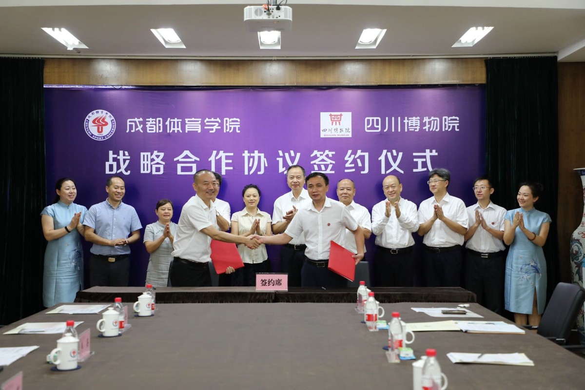8月8日,四川博物院与成都体育学院博物馆签订《加强文物保护利用战略合作协议》。未来,双方将本着“诚信互利、优势互补、资源共享、共同发展”的原则,全方位、多渠道加强和持续推进馆校合作,加强文物保护与利用。