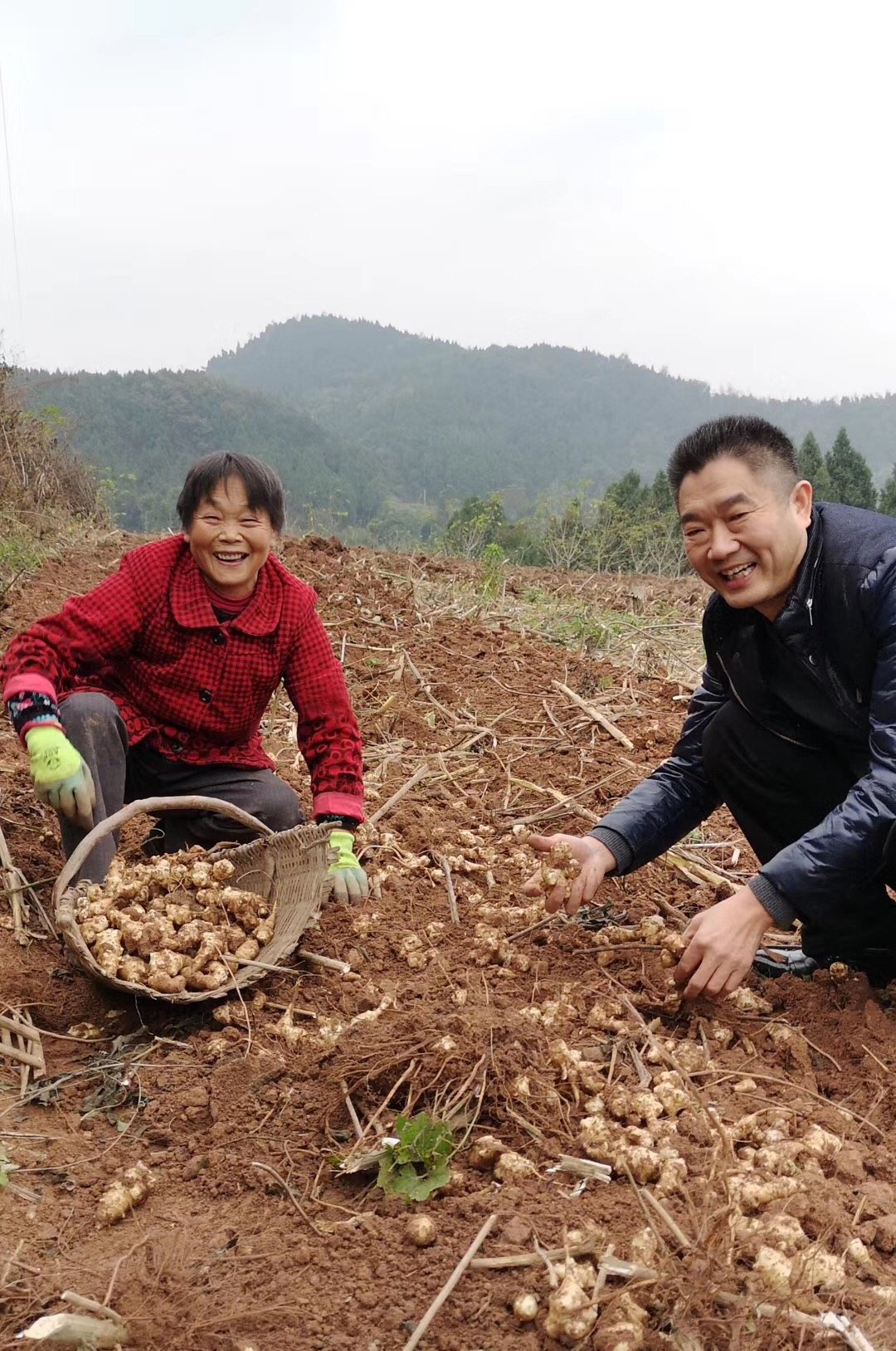 范海全(右)与村民采挖洋姜
