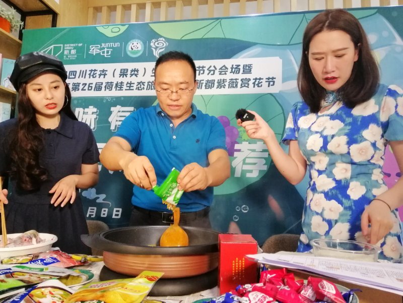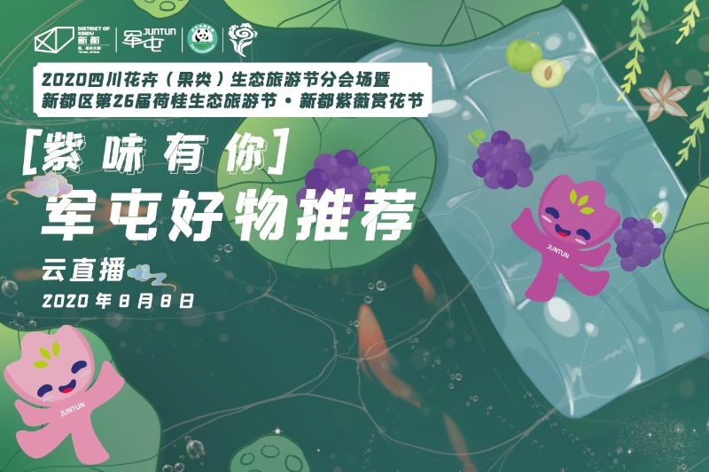 8月8日,“逸趣生态 潮玩香城”云享季活动第四场“紫味有你·军屯好物推荐”专场火热开场,成都新都区军屯镇特色企业的代表们在线卖货,开启军屯产销新尝试。