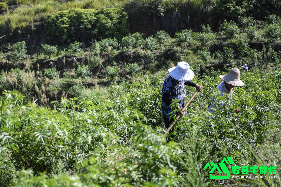 达州市达川区花石岩村的村民正在青花椒地里除草。