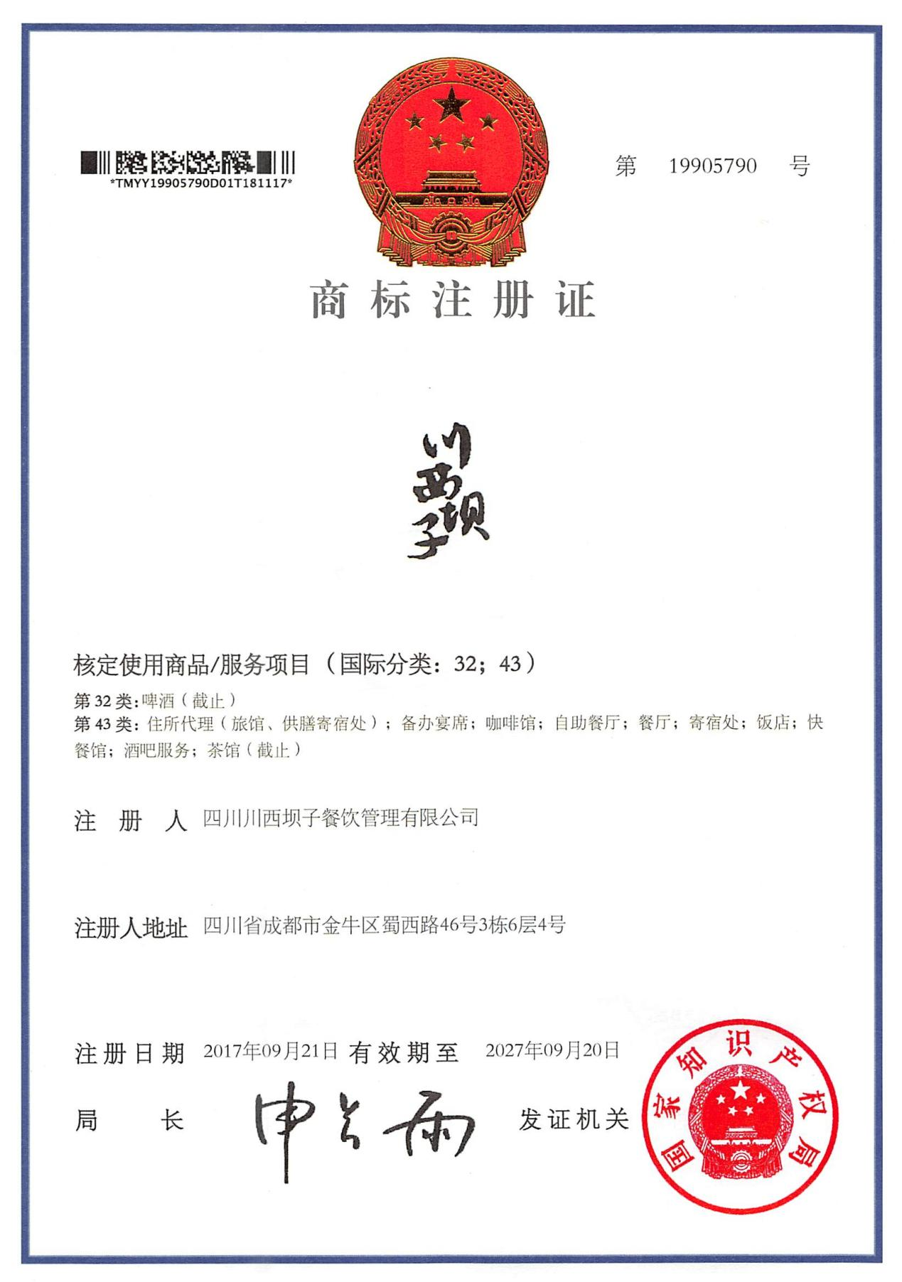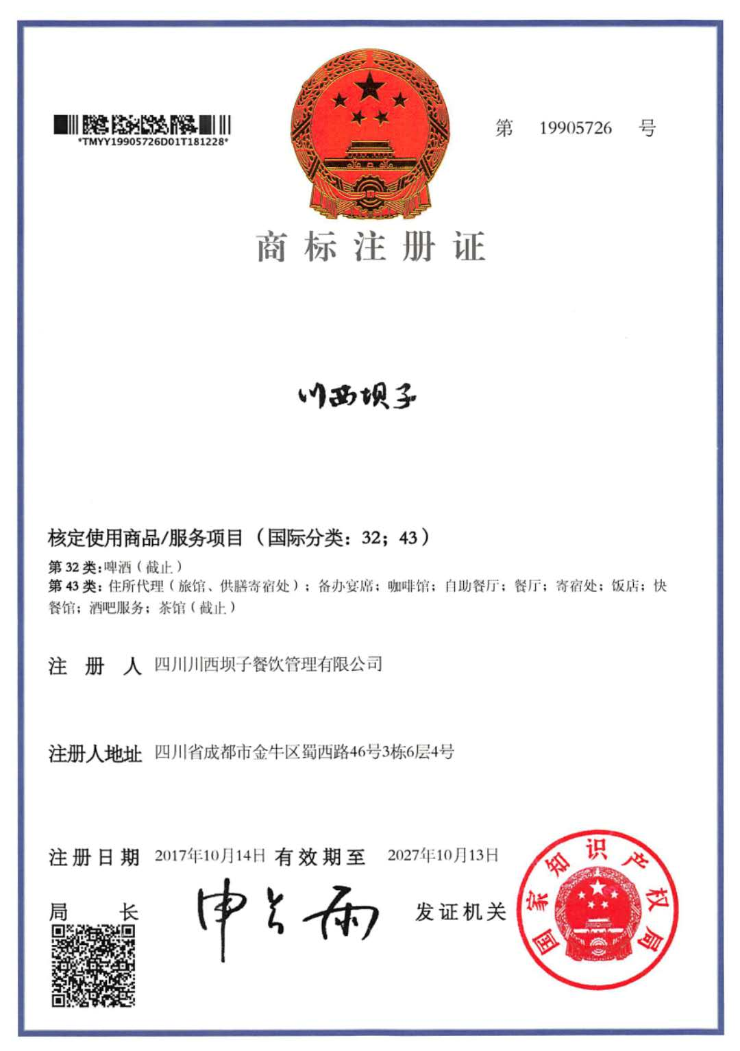 从2010年对 “川西坝子”牌匾办理著作权登;2017依法获得以“川西坝子”牌匾文字的横排、竖排样式为形式的商标;2020年又依法获得第33755577号“川西坝子”商标。截至目前,川西坝子已经依法取得其他表现形式的“川西坝子”文字商标,开启了对“川西坝子”品牌全类别、全方位、无死角的知识产权保护。