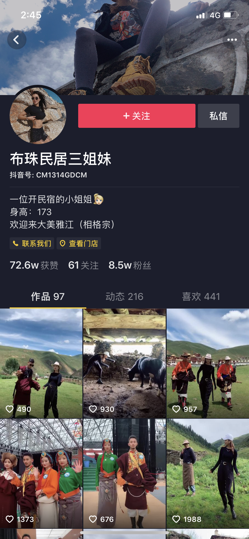 可是忙成这样,粉丝们不干了。原来,格德措姆是当地小有名气的网红,光抖音平台就有8万5千多粉丝。“好久没更新了,也没空直播,粉丝们都在催我了。”性格爽朗的格德措姆是典型的藏族美女,1米7多的个子,能歌善舞。在抖音上,她的作品最多有10几万点赞。“一开始介绍我们客栈,后来就拍唱歌跳舞的视频,现在发些搞笑的段子,点赞特别多。”刚刚结束的甘孜州第二届青年网红达人秀,格德措姆就拿了“最佳潜力奖”。
