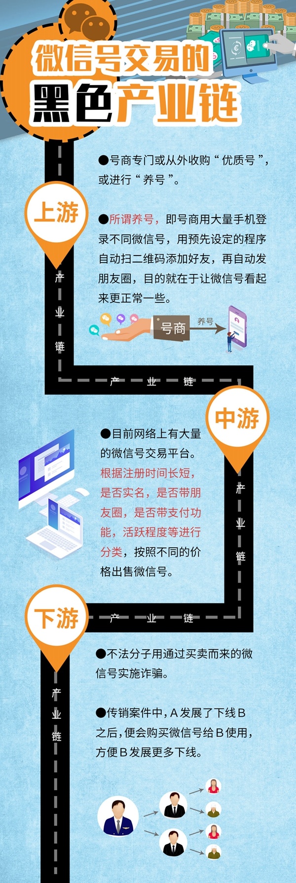 还有业内人士告诉记者:“除了诈骗案件外,在破获的一些传销案件中,便发现A发展了下线B之后,便会购买微信号给B使用,方便B来发展更多的下线。”