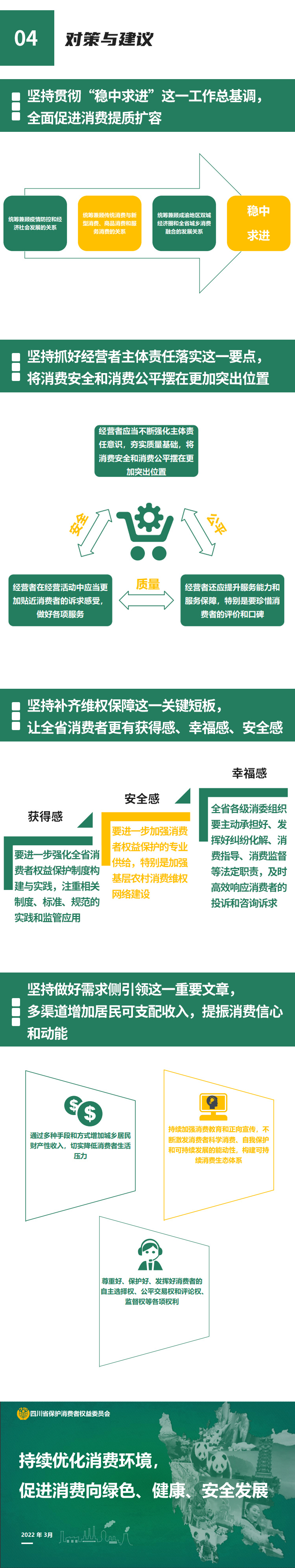为进一步改善消费环境,促进消费畅通,助力高质量发展,结合四川省情和本次调查有关情况,报告还提出了四大建议。