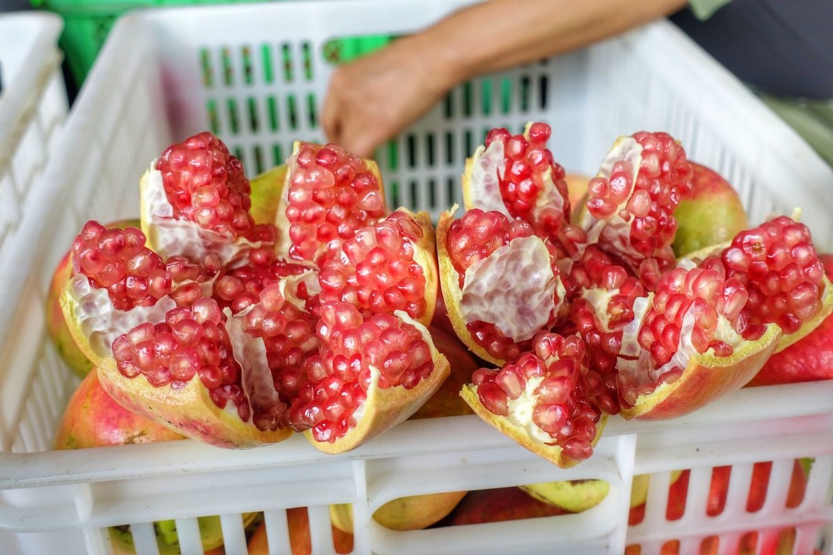 研究发现,石榴含大量的有机酸、糖类、蛋白质、脂肪、维生素以及钙、磷、钾等矿物质。中医认为,石榴具清热、解毒、平肝、补血、活血和止泻功效。
