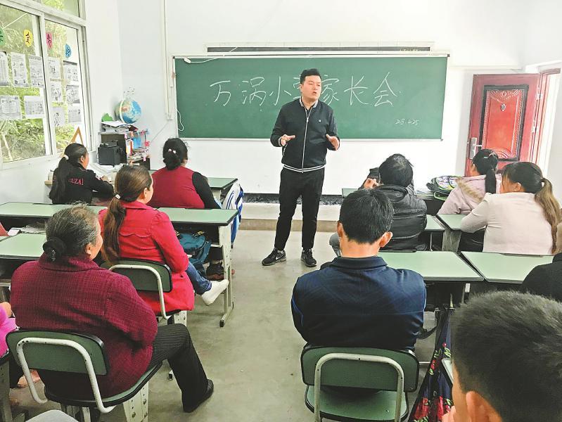 曾东在万涡村小学召开家长会,进行家风教育。 受访者供图