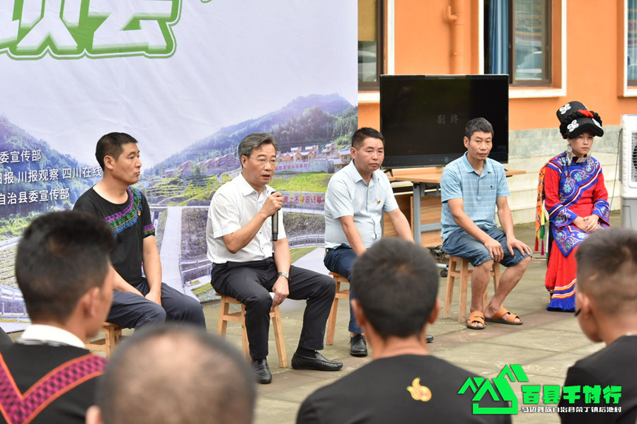 当天,四川日报全媒体“决战全面小康 决战脱贫攻坚”大型报道暨“百县千村行”采访系列活动走进后池村,组织了一场“乡村坝坝会”。当地“三级书记”——乐山市人大常委会副主任、马边县委书记郭正强,荣丁镇党委书记拉尔罗叶,后池村党支部书记吉朵居作和父老乡亲们围坐在一起,聚焦脱贫奔康、乡村振兴摆起了龙门阵。