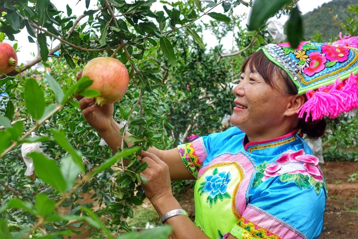 眼下,攀枝花市仁和区大田镇的软籽石榴开始成熟,陆续进入采摘期。