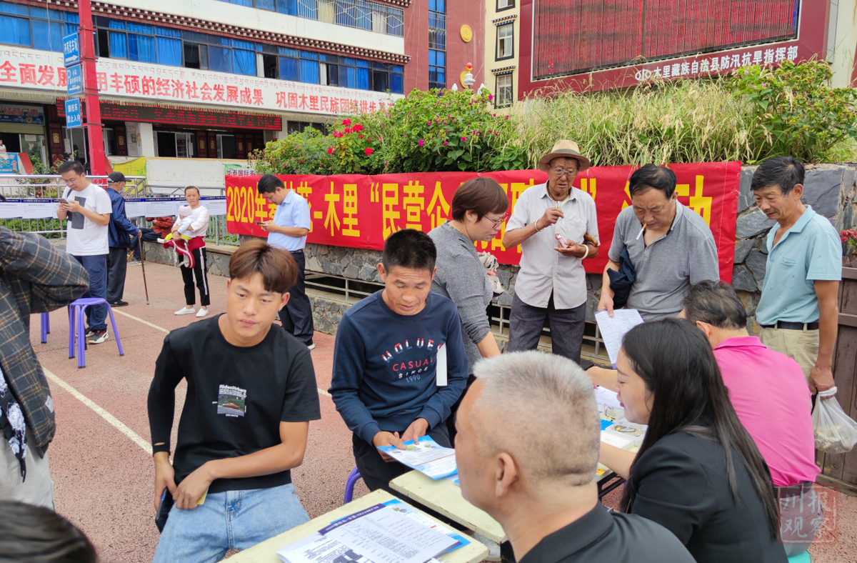 8 月 10 日,“2020 年攀枝花—木里‘民营企业招聘月’”首场招聘活动在木里县民族体育广场举行。招聘会现场共 24 家企业参加,提供了 43 个工种、389 个用工岗位,吸引了当地包括建档立卡贫困户在内的 600 余人入场求职。75 人与用人单位现场达成就业意向,其中建档立卡贫困劳动力 15 人。现场发放就业扶贫政策宣传资料、企业宣传品共计500 余份。