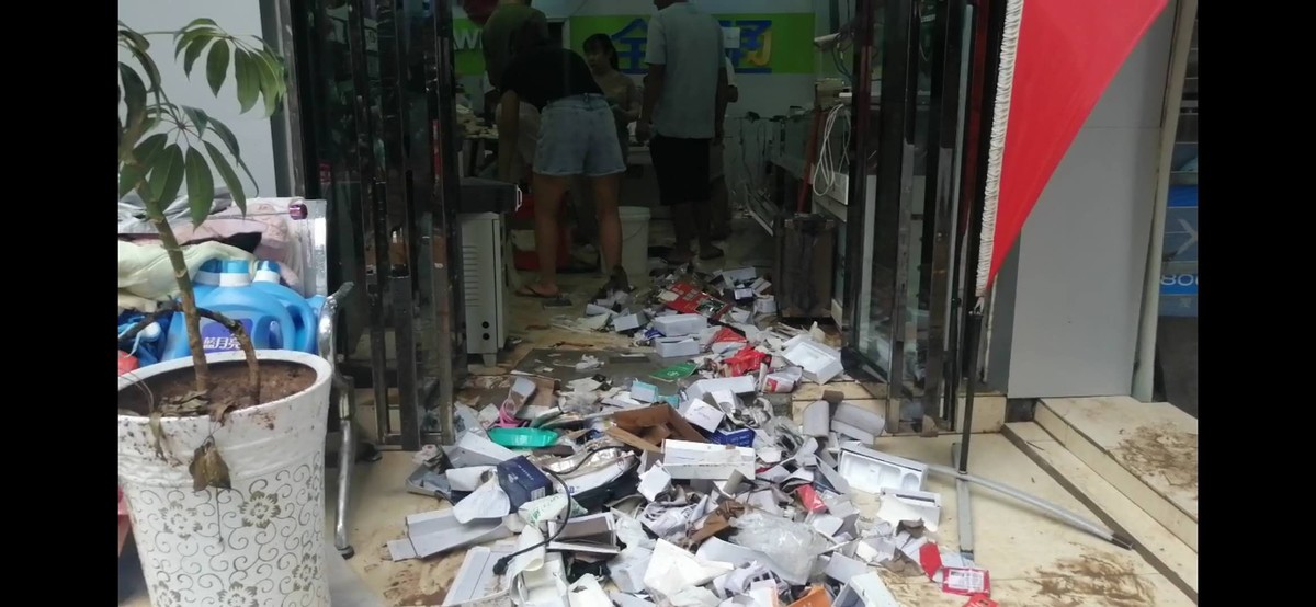 13日清晨,当暴雨停了,洪水退去后,亲戚才陆续进店,帮王堂建一起清理淤泥和杂物。王堂建说,他的手机店80多部功能手机、10多部智能手机、电脑、音响等电子产品全被污水浸泡过,“损失不低于45000块。”