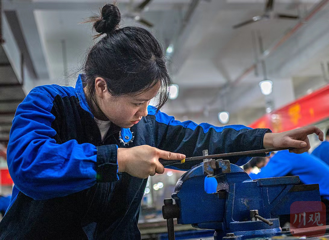 数控加工机床如行云流水般加工着复杂零件,在削铁如泥的同时,精度把握也丝毫不差。很多现代化数控机床,通过精确计算生产出复杂的零件,这是成都市温江区燎原职业技术学校(以下简称燎原职中)的数控实训现场。