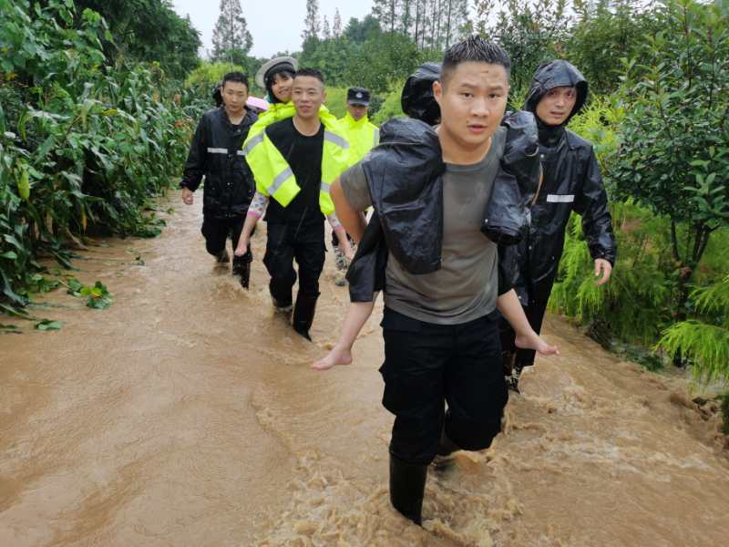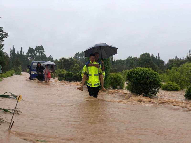 8月16日上午,成都遭遇暴雨袭击。崇州市道明镇济协社区山洪暴发,积水严重,大量群众急需转移到安全地带。