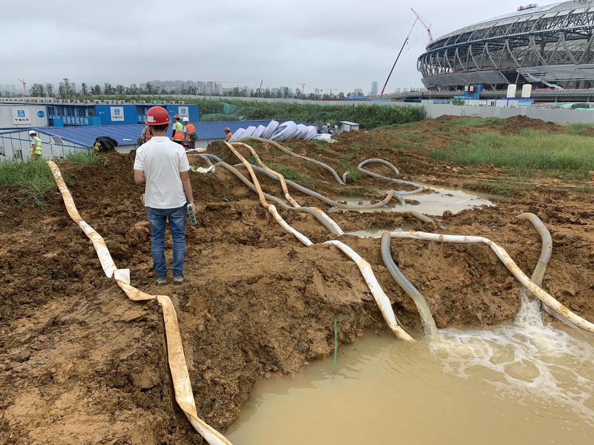 保障大运会项目施工现场人员安全也至关重要。徐守华介绍,项目施工人员共有3000多名,部分为外地人员,目前人员生活区的活动板房已被雨水淹没,我们开展了疏散和安置工作,暂无人员伤亡。