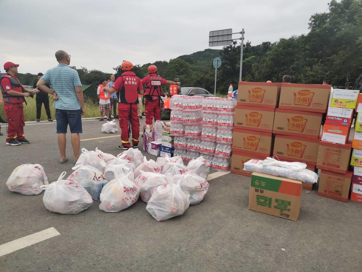 为保障救生平台上村民供给,射洪市相关部门通过无人机和冲锋舟等形式,向他们供给食品、水、汽油等生活必需品400公斤,保障今晚、明天的基本生活。
