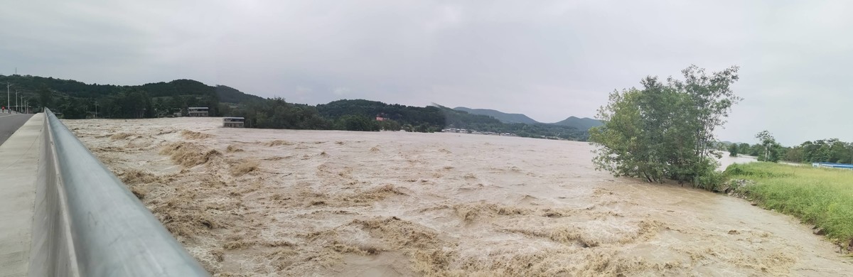 8月16日下午5:30,记者赶到射洪市金华镇新黑水浩大桥,这是连接涪江右岸和黑水浩村的通道,桥对面的黑水浩村已有一米多深积水,桥下涪江洪水轰隆隆而过。