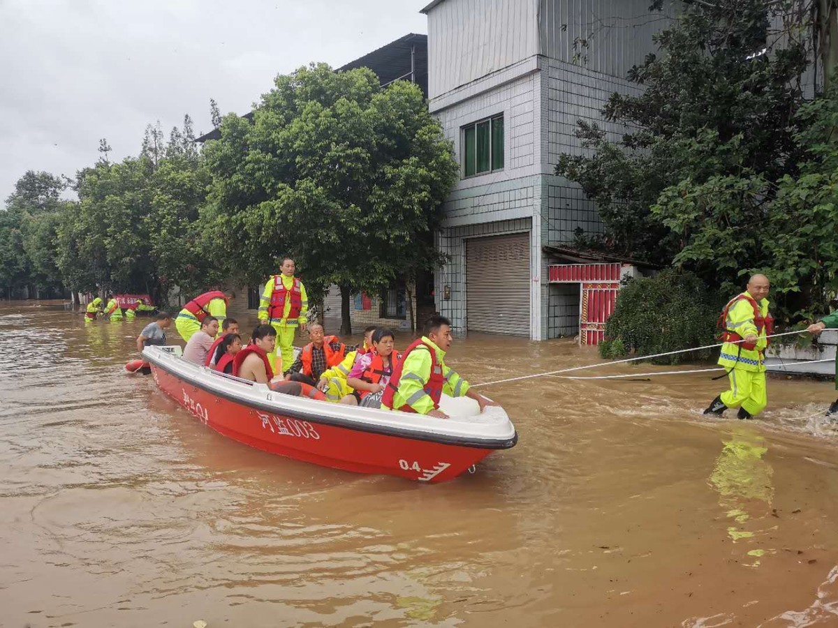 16日20时45分,沱江干流三皇庙水文站出现洪峰446.29米,洪峰流量7910立方米/秒,超警戒水位5.74米,超保证水位3.45米,重现期为50年一遇洪水,比2018年7月11日7810立方米/秒的洪峰流量还高,仅次于1981年7月13日的8110立方米/秒。