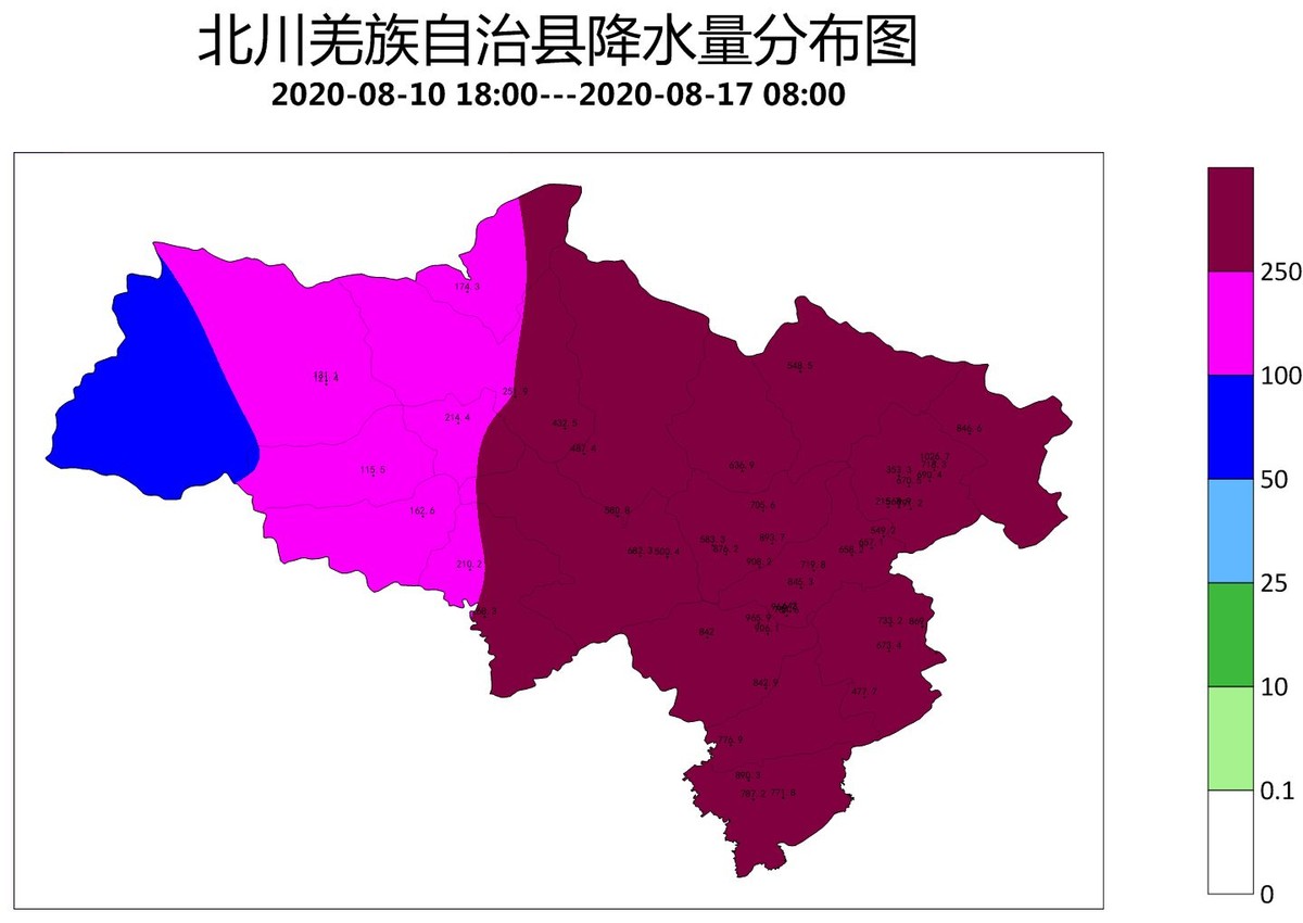 8月17日,川报观察记者从绵阳市北川羌族自治县了解到,从8月10日18时开始至8月17日08时,该县累计降雨量超过1000毫米的乡镇1个(陈家坝),900-1000毫米2个乡镇(擂鼓、曲山),800-900毫米4个乡镇(永昌、漩坪、通泉、桂溪),500-700毫米4个乡镇(永安、禹里、白坭、都贯)。