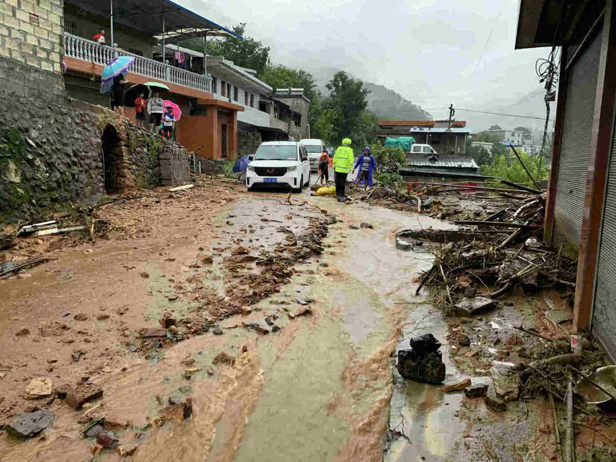 2、国胜乡境内盐择路多处发生垮方,车辆无法通行,目前部分道路已抢通,可单边通行;