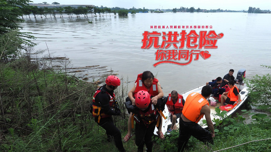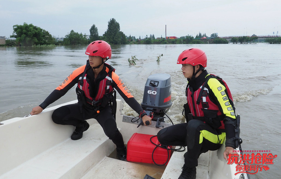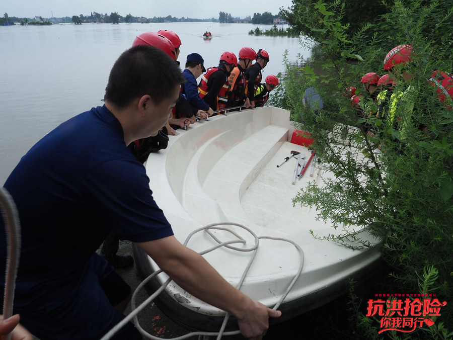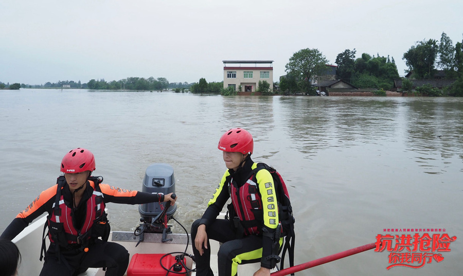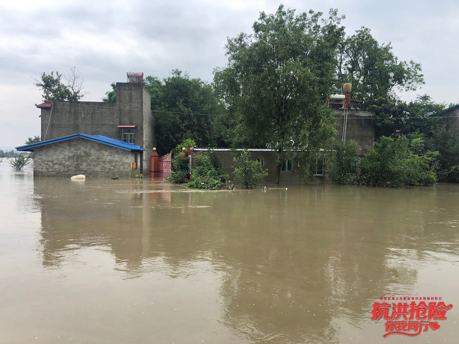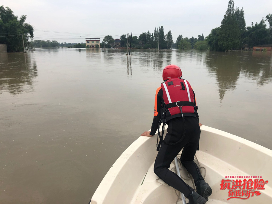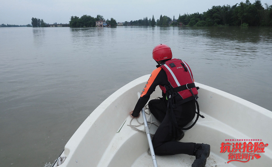 8月17日中午,记者跟随消防救援人员,在金堂县清江镇搜寻解救被洪水围困的群众。