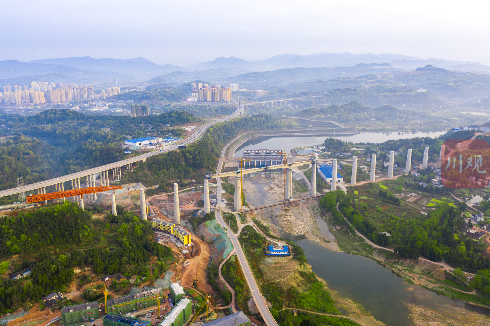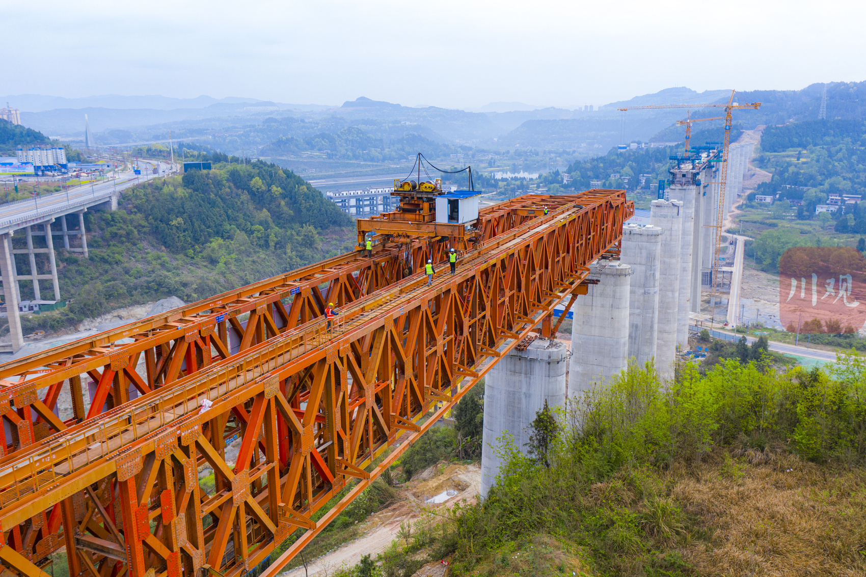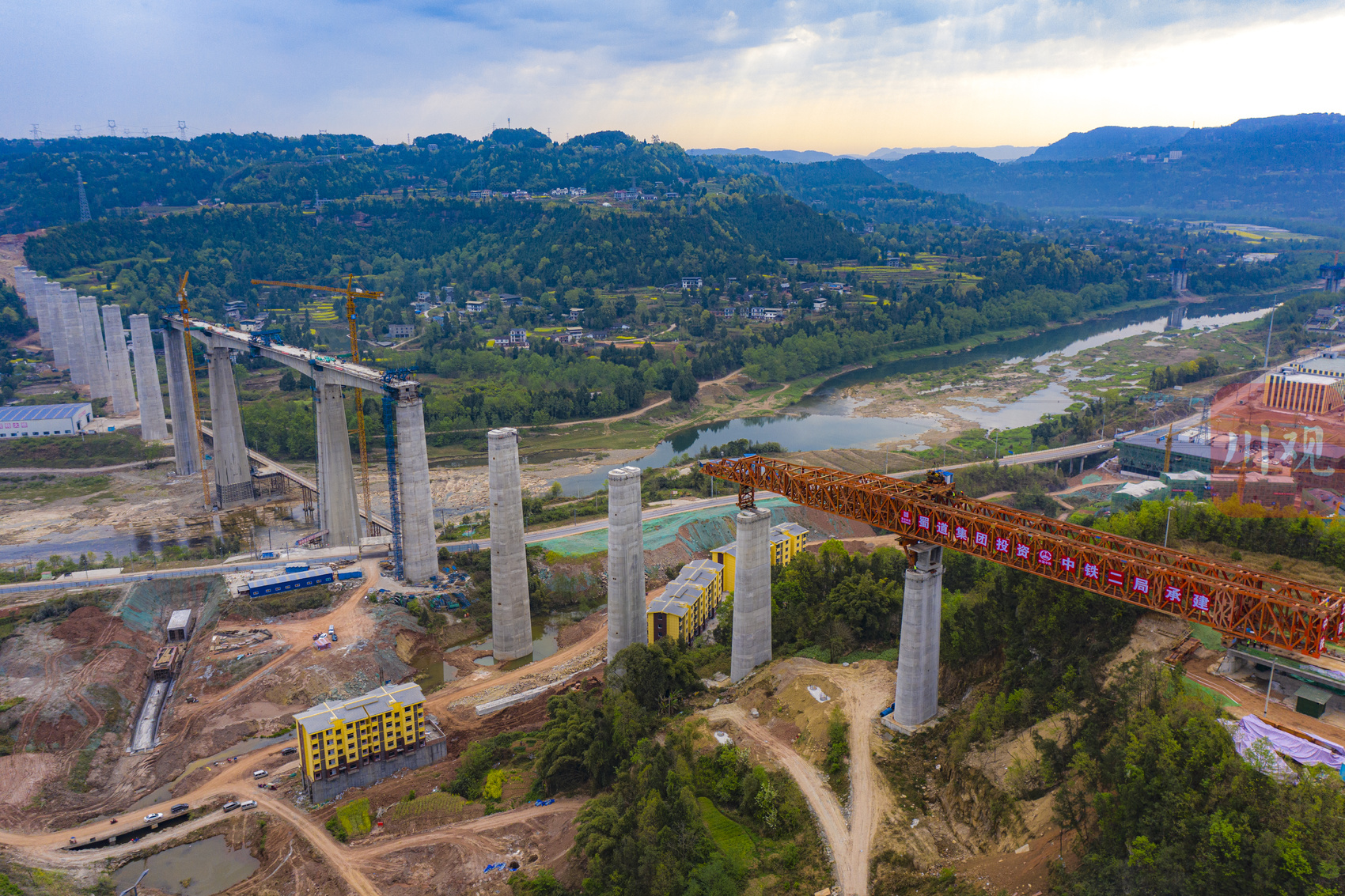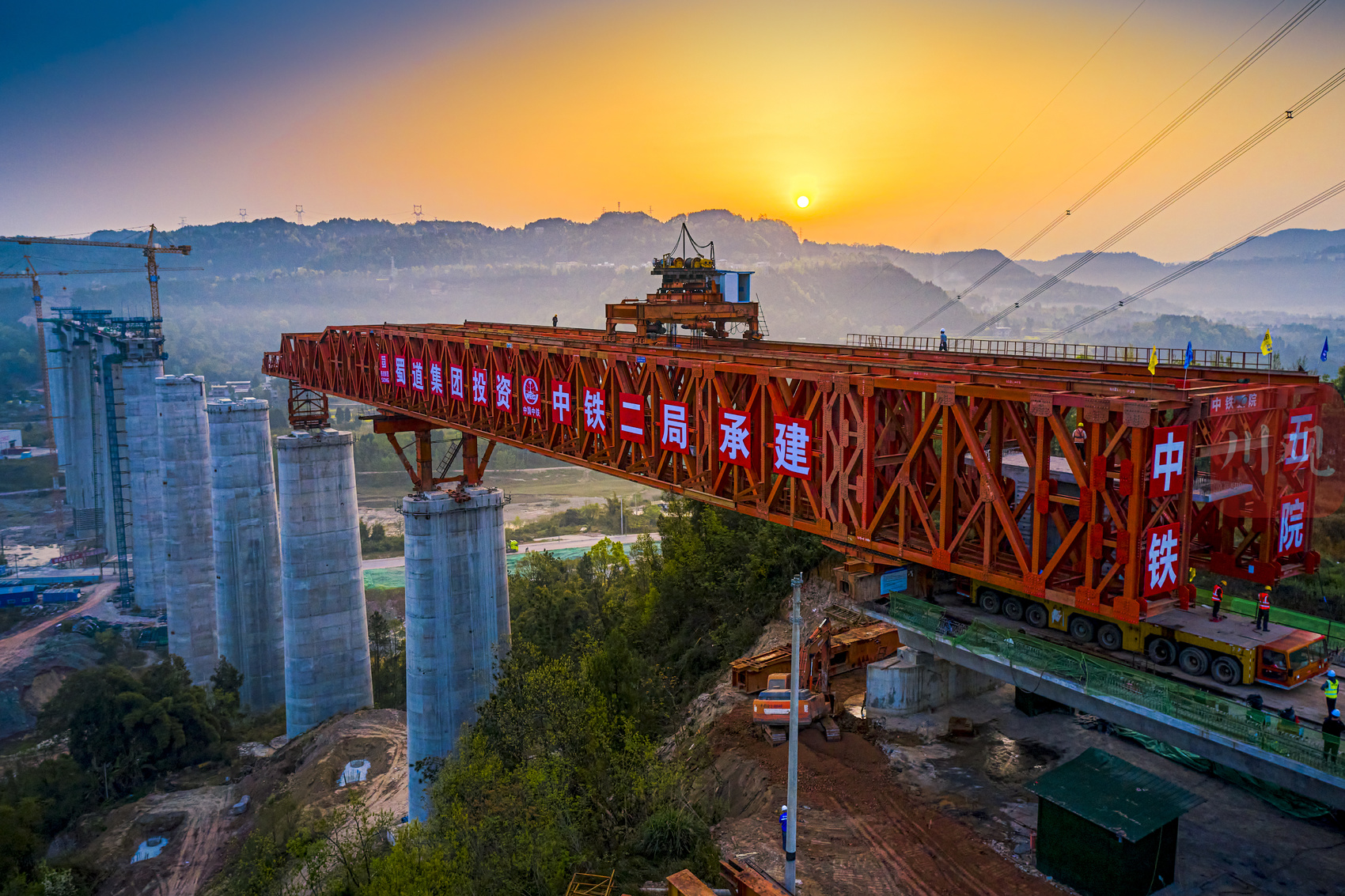 据了解,汉巴南铁路恩阳河特大桥是四川省首座在高速铁路上使用节段拼装工艺的桥梁,也是国内节段拼装简支箱梁桥梁中桥高最高(最大桥高98.44米)、跨度最大(最大跨度64米)的桥梁。项目部经过精心组织、科学施工,截至目前已完成简支拱、简支梁、连续刚构施工,节段拼装预计10月底完工,完工后将同步进行桥面系作业和铺轨作业。