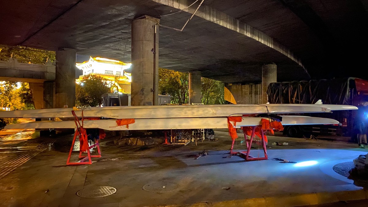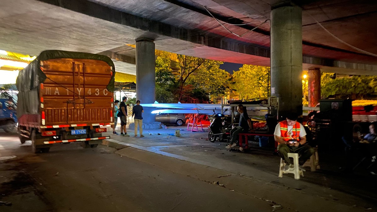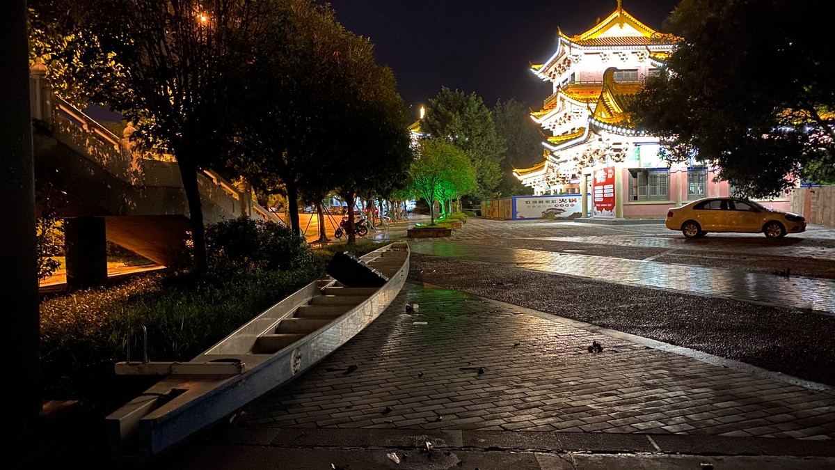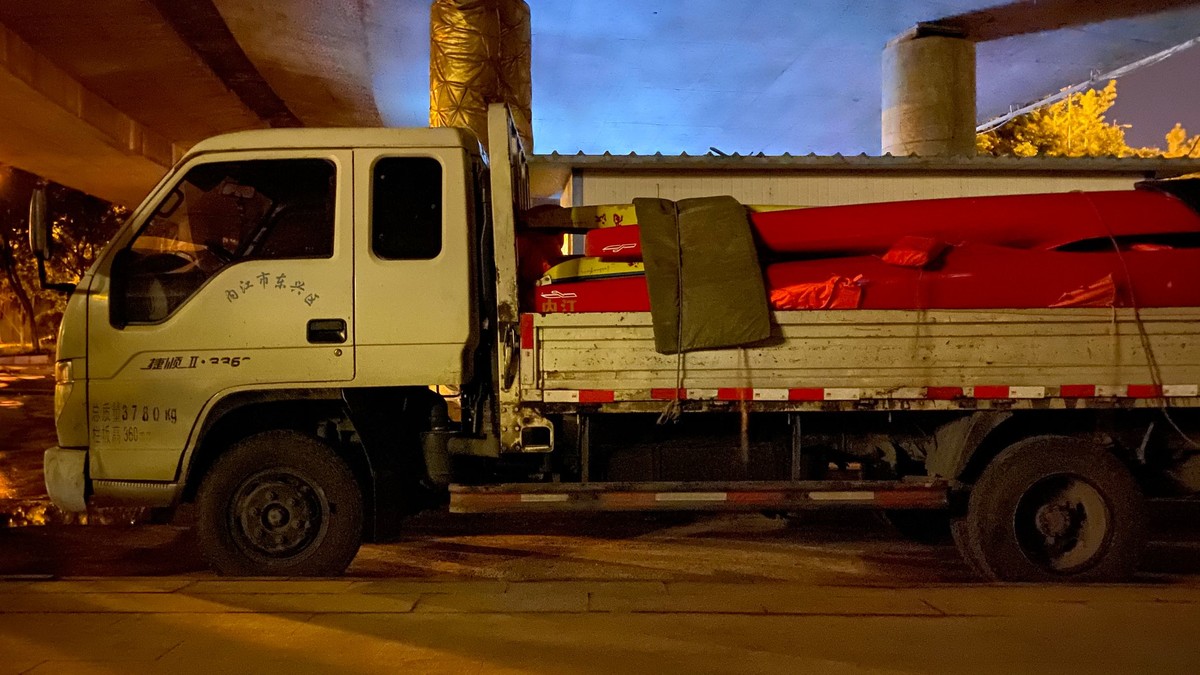 17日晚上23时48分,在内江市桐梓坝大桥下,内江市赛艇皮划艇队教练唐波一边焦虑地用手电筒查看被洪水淹没的训练基地和洪水水位,一边检查3辆大货车装的物品,这3辆大货车上,满满当当装着都是桨、力量器材等内江市赛艇皮划艇队的“全部家当”。